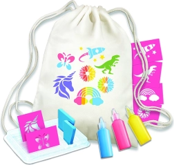 Med dette kreative 4M-sæt kan børn udsmykke deres egen rygsæk med snørelukning og forvandle den til et unikt modeaccessorie. Anvendelsen er enkel og sikker og takket være de medfølgende skabeloner og tekstilfarver er den velegnet selv for begyndere. Ideelt som gave til små kunstnere.