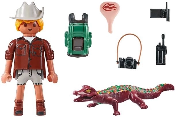 Begiv jer ud på eventyr med forskerfiguren, der er udstyret med hat, rygsæk, walkie-talkie og kamera. Den unge kaiman giver legen autenticitet og vækker interessen for naturen. Sættet er fremstillet af plast i høj kvalitet og er velegnet til børn fra 4 til 10 år.