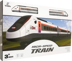 Egenskaber ved toget: Bevægelse fremad, rød diode på lokomotivets front, realistiske lyde. Skinnerne og toget er lavet af kvalitetsplast, som sikrer lang levetid og holdbarhed.