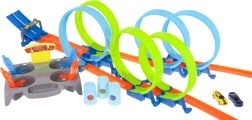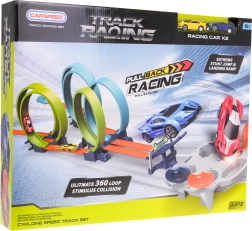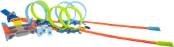 Dette racersæt tilbyder sjov fyldt med loops, fartudfordringer og eventyrlige spring. Med den dobbelte bane og muligheden for parallel race er der garanteret sjov for hele familien. Biler med Pull Back-drev opnår svimlende hastigheder og gennemfører skarpe loops, mens de sigter mod målet.