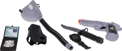 Sættet indeholder maske med åndedrør, legetøjspistol, kniv og andre realistiske tilbehør til eventyrlege.