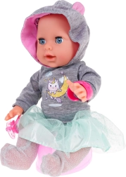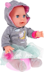 - Dukken græder, ler, nyser, hoster og bliver endda “syg” med effekt af oplyste kinder.