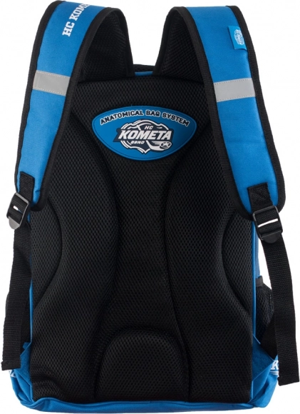 Skolerygsækken Kometa tilbyder behagelig og sikker bæring for skolebørn takket være anatomisk polstret ryg, justerbare stropper og reflekselementer. Praktiske tre store lommer, to side-netlommer og åndbar polstring sikrer masser af plads og komfort hele dagen.