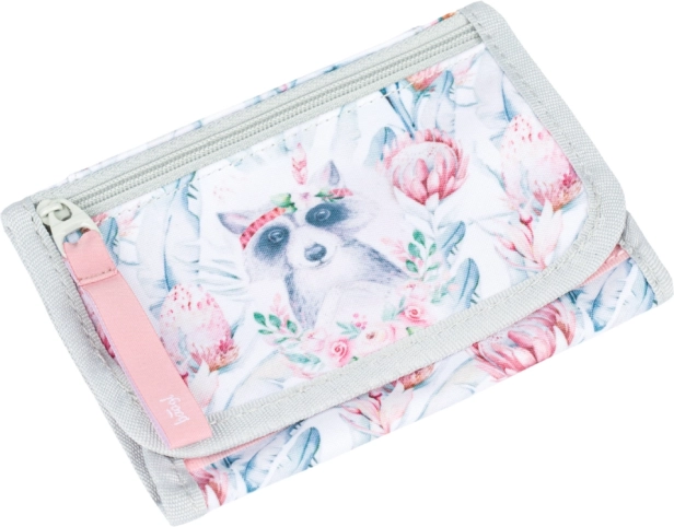 Denne lette og robuste hals-pung er et glimrende valg for børn og teenagere, der vil have penge og småting lige ved hånden. Designet med en sød vaskebjørn og blomster fanger blikket med det samme, mens de gennemtænkte detaljer gør den behagelig i daglig brug.