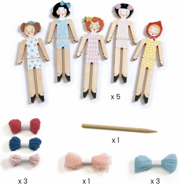 Fantastisk sæt til piger, der kan lide dukker. Med dette sæt kan pigerne lave 5 smukke dukker og bære dem med sig overalt i en lille stofpose. Størrelse på dukke: ca. 10 x 3,5 cm. Velegnet til børn fra 6 år.