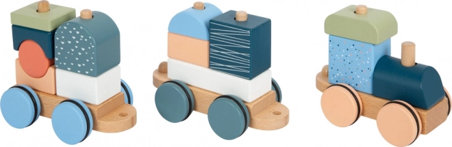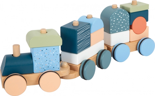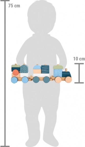 Toget er også en stablende pusle – 13 dele kan sættes sammen, kombineres og bruges separat som byggeklodser.