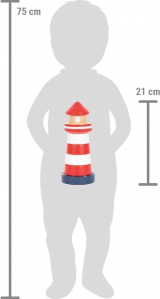 Oplev magien ved maritim leg med et stabeltårn formet som et fyrtårn fra small foot. Fremstillet af 100% FSC®-træ og indeholder 7 lette, grebsvenlige dele, som udvikler finmotorik, hånd-øje-koordination og læring af farver og størrelser. En fleksibel stav med gummifastgørelse sikrer tryg leg, og det færdige fyrtårn er også en smuk dekoration til børneværelset.