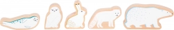 Figurer af isbjørn, sneugle, polarræv, sæl og hare inspirerer til historiefortælling og stimulerer fantasien under legen.