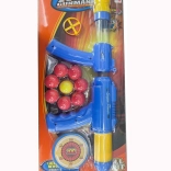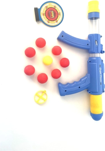 Vi præsenterer et moderne legetøj, der giver underholdning ikke kun for børn, men også for voksne. Konstruktionen gør det muligt at dreje 360 grader, hvilket giver nye muligheder og skydevinkler. Indsæt blot en blød bold i løbet, og gør dig klar til action.