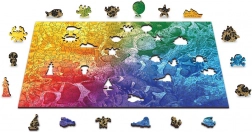 Oplev den farverige undervandsverden med motiv af tropiske fisk og underholdning, der ikke bliver kedelig. Med laserskårne brikker og dusinvis af originale former venter en fængende udfordring. Puslespillet er dobbeltsidet – på forsiden samler du det farverige motiv, på bagsiden et gentaget mønster efter formerne.