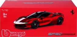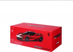 Modellen Ferrari SF90 Stradale Assetto Fiorano 2020 fra Bburago gengiver troværdigt karakteren af Ferraris første plug-in hybrid. Specialudgaven Assetto Fiorano er fokuseret på maksimal ydeevne og køreegenskaber – og disse elementer afspejles også i den præcise modeludførelse. Den røde lakering med kontrastdetaljer fremhæver det sportslige design og de aerodynamiske linjer.
