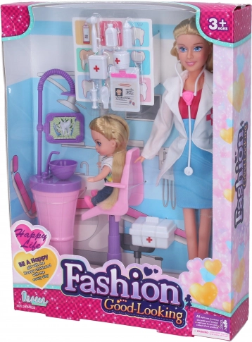 Dette charmerende sæt bringer tandlægeklinikkens verden direkte ind på børneværelset. Både tandlægedukken og den lille pige gør det muligt at spille realistiske scener, lære børn grundlæggende tandhygiejne og udvikle kommunikative færdigheder.
