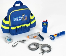Oplev den sjove politi-rygsæk BEN & SAM fra det anerkendte tyske mærke Klein – et komplet sæt til den lille ordenshåndhæver. Indeholder rygsæk med reflekselementer, funktionel lommelygte, kortbølgeradio (attrap), fløjte, politiskilt, plastikhåndjern og vandpistol. Med flere lommer og robust udførelse er det hurtigt, overskueligt og sikkert at pakke legetøjet.