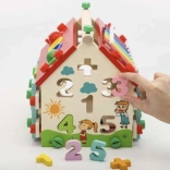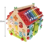 Træhus til børn er et multifunktionelt og pædagogisk legetøj designet til at udvikle børns motoriske og kognitive færdigheder. Det indeholder forskellige aktiviteter, herunder xylofon og formeindsatser, som sikrer masser af sjov.