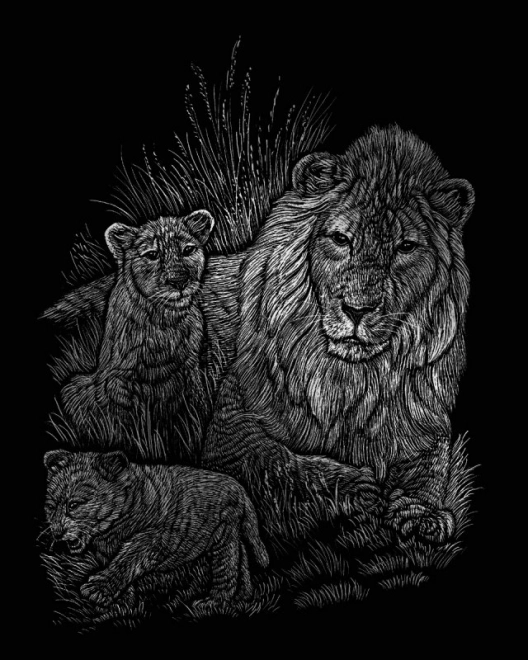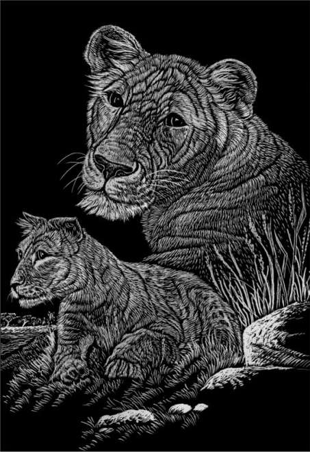 Oplev magien ved skrabe billeder, som er populære på tværs af generationer. Brug den medfølgende plastikskraber med metalspids til at skrabe linjerne i det fortrykte billede væk og afslør det gyldne, sølv, regnbue- eller holografiske baggrund under den sorte overflade. Hvert billedværk er unikt og lover mange timers sjov.