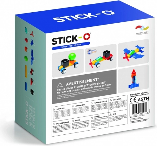 Opdag det sjove magnetiske byggesæt til de mindste – STICK-O City Set med 16 dele. Takket være sikre neodymmagneter forbindes delene let og holder sammen, hvilket understøtter kreativitet, finmotorik og rumlig forestillingsevne. Sættet gør det muligt at bygge biler, fly og andre køretøjer og begejstrer børn med sin enkelhed og farverigdom.
