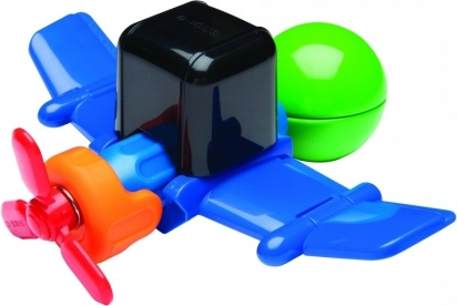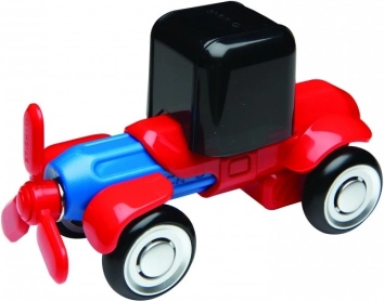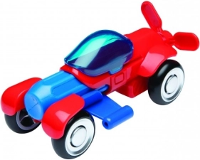 Sættet indeholder former, der gør det let at samle enkle modeller af køretøjer – fra biler til fly. Ideelt til de første bygge-successer.