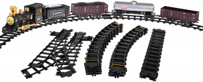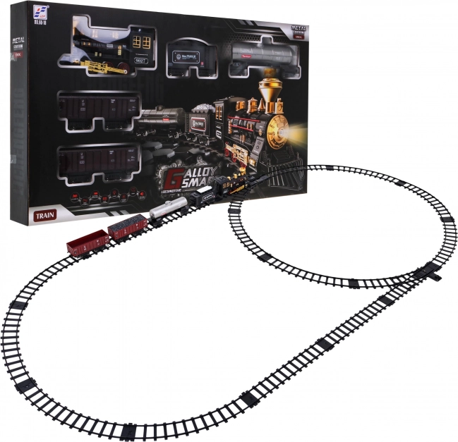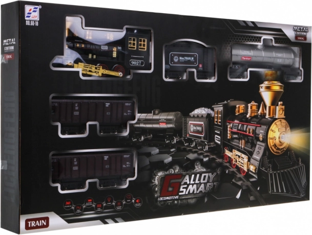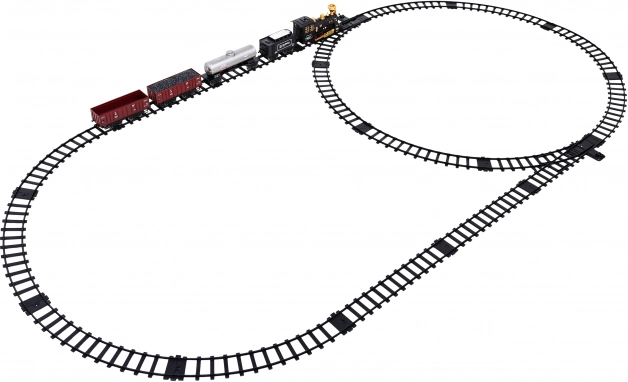 Denne togsæt tilbyder en elliptisk bane med cirka mål på 213 cm x 106 cm. Under kørsel udsender lokomotivet røg fra skorstenen efter påfyldning med vand (pipetten er inkluderet i pakken), og frontlyset lyser. Nem samling af spor sikrer sikker og holdbar brug. Sættet indeholder: