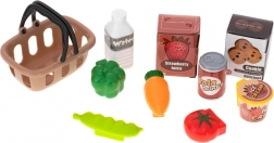 Sættet inkluderer en farvet indkøbskurv, og alle produkter har stregkoder, der kan scannes. Kasseapparatet drives af batterier, så børn kan lege overalt.
