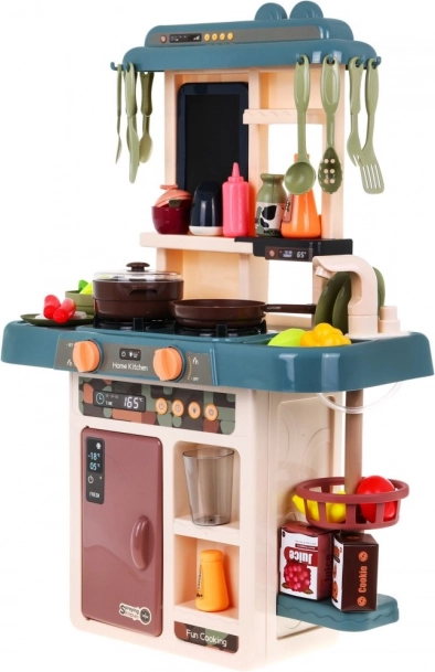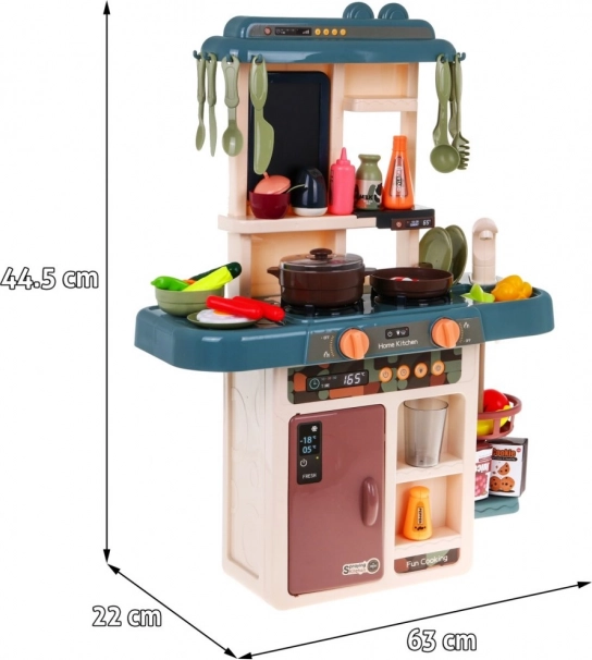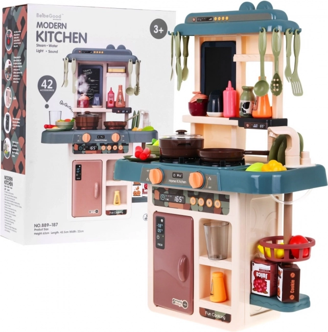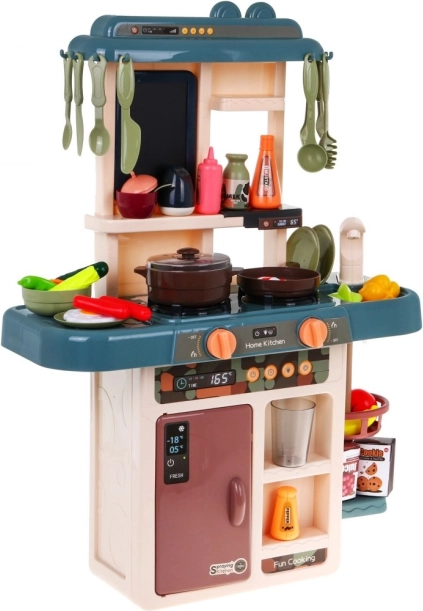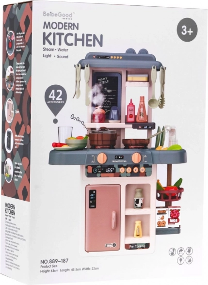Dette køkken er en uimodståelig ledsager for enhver lille kok takket være dens realistiske funktioner. Det har oplyste kogeplader med realistiske stege- og kogelyde, en hane med ægte vand og dampfunktion, hvilket sikrer en autentisk legeoplevelse.