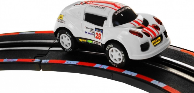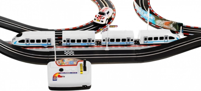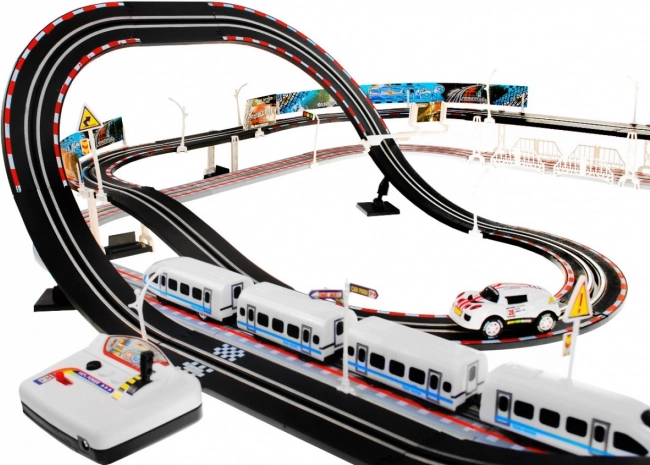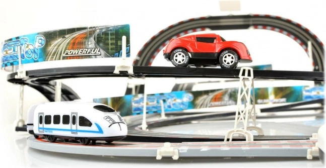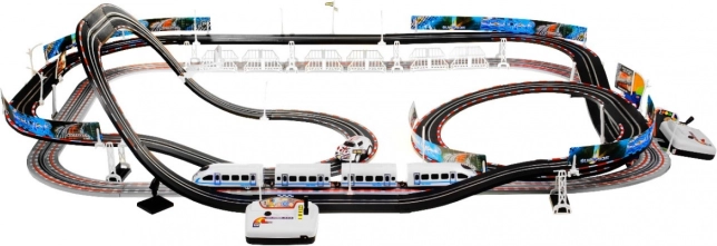 Banesystemet tilbyder ikke kun en racerbane, men også en bane til det elektriske tog, hvilket giver uendelige muligheder for leg og ræs.