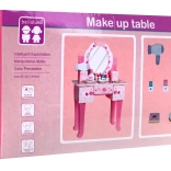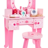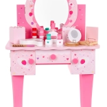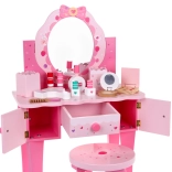 Dette fantastiske trætoiletbord er enhver lille prinsesses drøm. Med elegant design og stabil konstruktion tilbyder dette smykkespejl plads til alle vigtige kosmetiktilbehør. Omfatter taburet til komfortabel siddeplads og skuffer til opbevaring af små skatte. Lavet af ikke-giftigt træ med vandbaserede farver.