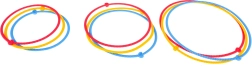 Spillet har farvede ringe i rød, blå og gul, som er attraktive for børn.