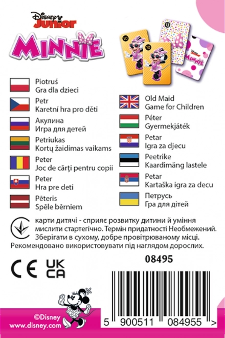 Det klassiske familiespil i sød Disney-stil bringer masser af sjov og spænding. Spillerne deler alle kortene, lægger par med samme billede og trækker på skift kort fra naboerne. Den, der til sidst sidder med Sorteper på hånden, taber. De enkle regler kan forstås af yngre børn, og de farverige illustrationer med MINNIE holder deres opmærksomhed.