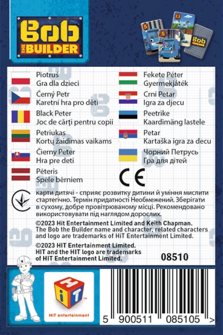 Det klassiske spil Sorteper vender tilbage i det elskede børnetema BOB BYGGEREN. Spillerne deler kortene ud, danner ens par og forsøger at komme af med alle kort. Den, der står tilbage med Sorteper på hånden, taber. De enkle regler sikrer hurtig og spændende underholdning for hele familien.