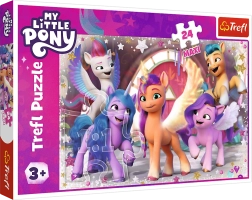 Oplev sjov i MY LITTLE PONY-universet. Disse 24 Maxi-puslespil er designet til små hænder – de større brikker er lette at holde, sætte sammen og udvikler finmotorik, koncentration samt sans for farver og former. Når puslespillet er samlet, får du et klart, farverigt billede af de populære ponyer i størrelsen 60 × 40 cm.
