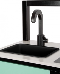 Enkeltgrebsarmatur, aftagelig vask, ovn med udtagelig bageplade og klikbare drejeknapper skaber en autentisk stemning af et rigtigt køkken og indbyder til fantasifuld leg.