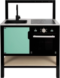 Dette visuelt attraktive legekøkken bringer et moderne industrielt look, som skiller sig ud på ethvert børneværelse. Den lette, men stabile konstruktion med sort ramme gør det nemt at flytte, så legepladsen hurtigt kan ændres. Realistiske betjeningsknapper, illustrerede apparater og funktionelle elementer stimulerer fantasien og understøtter selvstændig leg.
