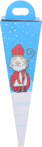 Blå kegle med Sankt Nikolaus-motiv, længde 50 cm. Ideel til Nikolaus-uddeling, slik og små gaver. Stilfuld og praktisk sæsonemballage.