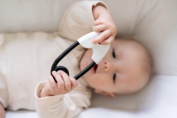 Dens kontrastfyldte design og milde raslen stimulerer dit barns sanser.