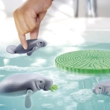 En voksen manate og to unger inspirerer til dyrepleje, fodring og observation i vandmiljøet.