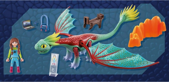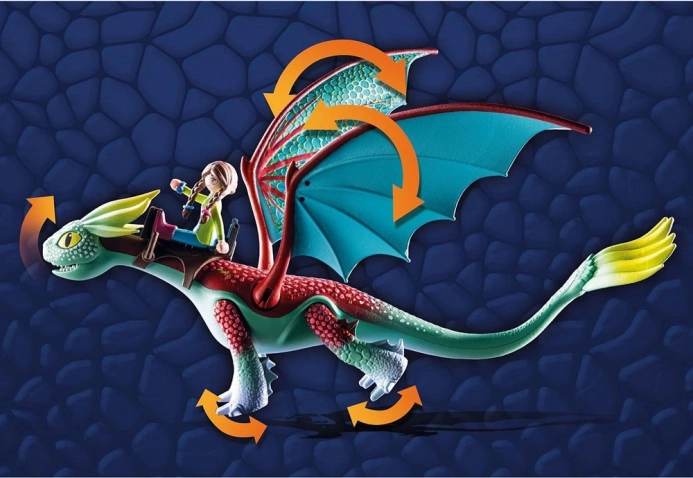 Med dette byggesæt træder børn let ind i dragenes magiske univers. Dragen har bevægelige ben, øverste del af hovedet og vinger, som kan drejes i alle retninger. Fjerprydelsen på den bagerste del af hovedet og spidsen af halen er lavet af blødt materiale for en sikrere og mere realistisk leg.