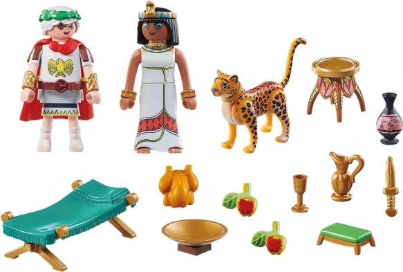 - Figur af Kleopatra, figur af Cæsar, leopard, chaiselong, lille bord, vase, kande, tiara og andet tilbehør