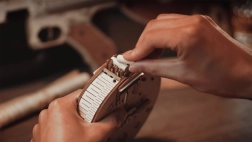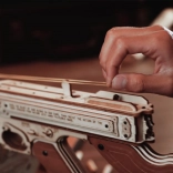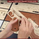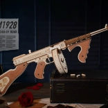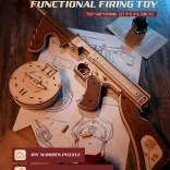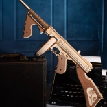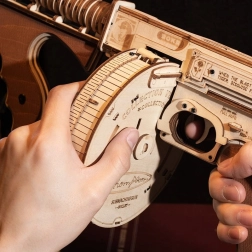 Dette mekaniske byggesæt i træ giver en realistisk oplevelse af den ikoniske THOMPSON-maskinpistol. Takket være præcis laserudskæring passer delene perfekt sammen, og samlingen er glidende og tilfredsstillende. Når du er færdig, får du en imponerende model med en funktionel gummiskuds-mekanisme, der virkelig kan skyde.