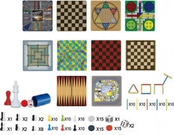 Spilsættet 100 i 1 er det perfekte valg til underholdning derhjemme for både børn og voksne. I pakken finder du 5 dobbeltsidede spilleplader, som er praktisk anvendelige til mange forskellige spil. En vejledning er inkluderet, så I kan kaste jer ud i spillet med det samme: