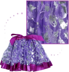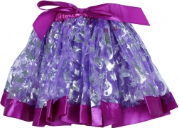 Lilla nederdel med skinnende sølvfarvede mønstre og elastisk talje tilpasser sig nemt forskellige kropstyper.