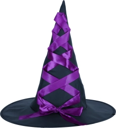 Sort og lilla hat med karakteristisk krydset lilla bånd giver kostumet autenticitet.
