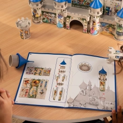 Farverige tryk giver liv til hver tårnspids og facade. Børn vil opdage deres yndlingshelte hver gang de ser på slottet.