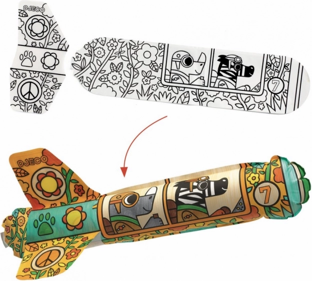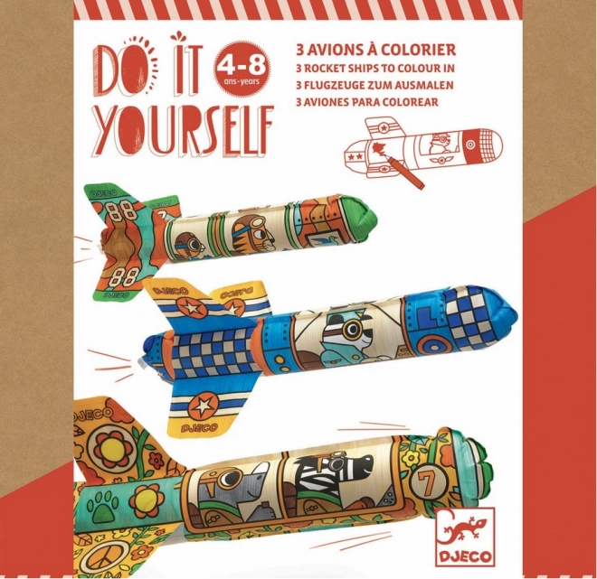 Et sjovt sæt for eksempel til en fødselsdagsfest. Børnene more sig med at farvelægge raketterne, som de derefter nemt kan puste op ved hjælp af det medfølgende sugerør og arrangere raketkapløb.