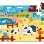 Smukt puslespil med motiv af små køer på bondegården, suppleret med mange andre dyr, som vil bringe glæde til enhver lille puslespilsfan.