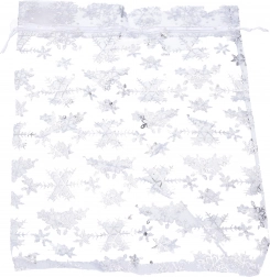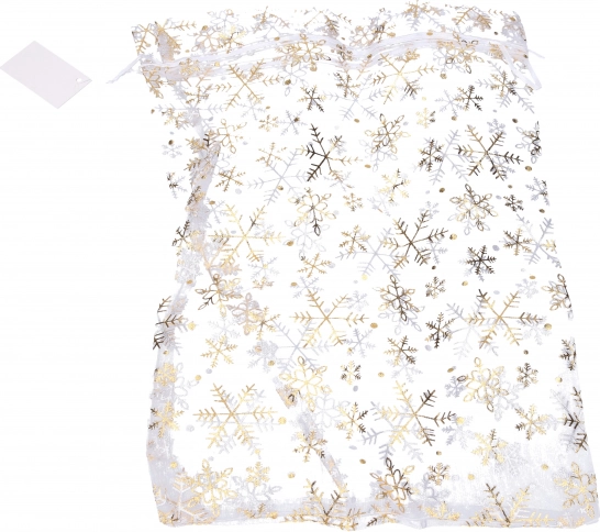 Skab den perfekte julestemning med denne smukke organza pose med snefnug motiver. Dens gennemsigtige materiale og fine mønstre tilføjer en elegance til gaveindpakningen.