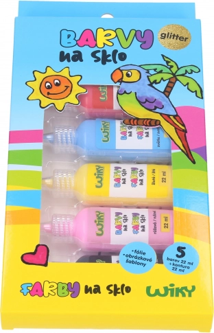 Sæt med glasmaling med glitter til kreativ maling. Indeholder fem farver og en sort kontur for fine detaljer.
