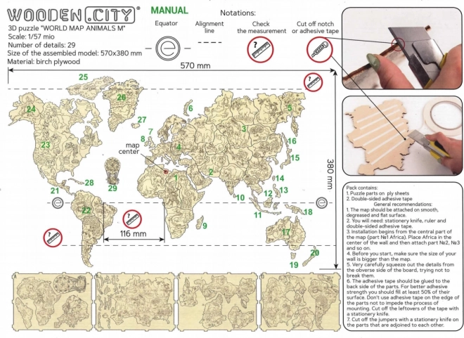 Et stilfuldt træverdenskort med dyr fra WOODEN CITY er en smuk dekoration til børneværelset, som understøtter kreativitet og interesse for natur og geografi. Takket være den nemme installation med dobbeltsidet klæbebånd sætter du det hurtigt op på væggen, døren eller skabet. Det er lavet af kvalitets birkekrydsfinér og indbyder direkte til at blive farvelagt.