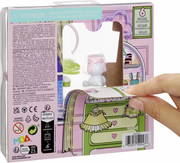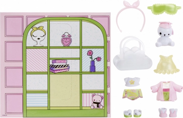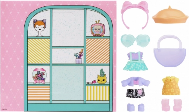 Hvert sæt rummer mere end 10 kosmetiske og modeitems, inklusive kjoler, nederdele, toppe, sko, tasker, hårbøjler samt briller. Displayet rummer 12 stk., ideelt til samling, gaver og kasselinjesalg. Stilfulde temaer som Sleepover, Spooky, Party, Chilly, Kawaii og Rock Out sikrer, at alle kan finde deres look.