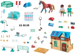 Velkommen til den maleriske Waterfall Ranch, hvor en vennegruppe tager sig af deres heste og hjælper både mennesker og dyr. Dette detaljerede PLAYMOBIL-sæt skaber et realistisk miljø for hippoterapi og en veterinærklinik med en aquatrainer, der kan fyldes med vand til skånsom rehabilitering af skadede heste. Den spirende dyrlæge Harleen tager sig af killinger og marsvin, mens hesteterapeuten Phil udfører undersøgelser og behandlinger.