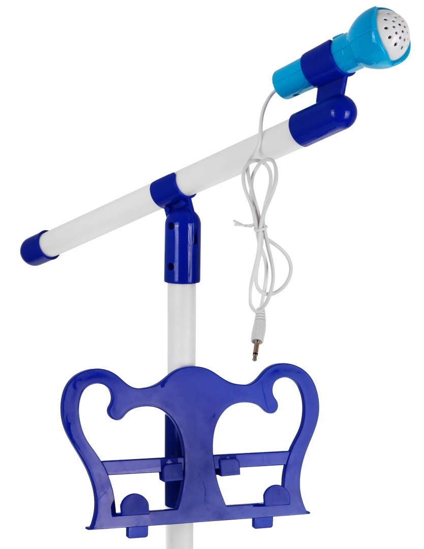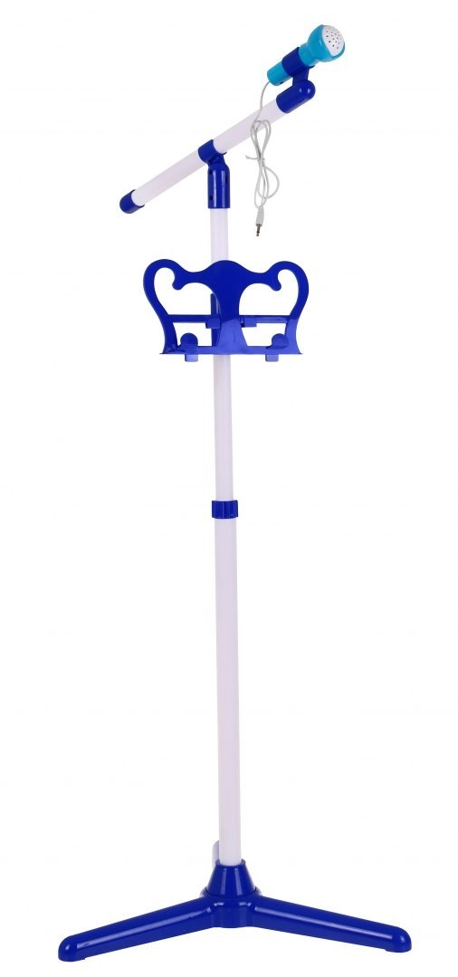Justerbar mikrofon på stativ med nodestativ og let plastskammel sikrer komfort ved både spil og sang.